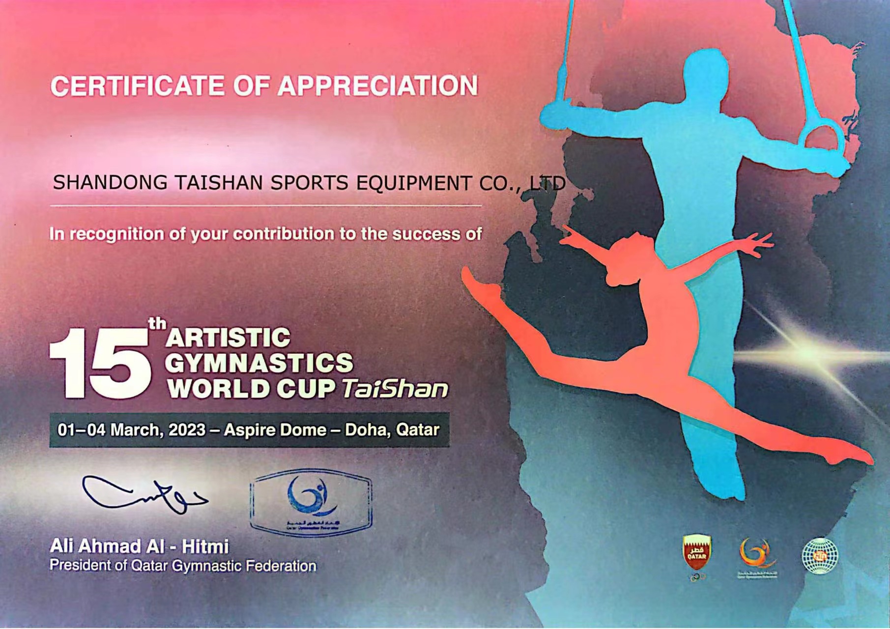 截止目前,泰山體育全球首創(chuàng)并通過(guò)國(guó)際認(rèn)證的碳纖維體操產(chǎn)品在2021年世界體操錦標(biāo)賽及兩屆體操世界杯大賽中均取得了完美表現(xiàn)。未來(lái)泰山體育將繼續(xù)增強(qiáng)科技創(chuàng)新引領(lǐng)作用,不斷提高創(chuàng)新研發(fā)水平,不斷推動(dòng)我國(guó)體育用品行業(yè)的技術(shù)進(jìn)步和生產(chǎn)制造水平的提升;始終貫徹專業(yè)、嚴(yán)謹(jǐn)、高效的工作作風(fēng)做好產(chǎn)品,以工匠精神打造中國(guó)體育產(chǎn)業(yè)的民族品牌。泰山體育將堅(jiān)定不移地響應(yīng)體育強(qiáng)國(guó)的國(guó)家號(hào)召,精準(zhǔn)服務(wù)更多的國(guó)內(nèi)外體育賽事,助力體育健兒圓夢(mèng),為世界體操運(yùn)動(dòng)事業(yè)的發(fā)展貢獻(xiàn)更大力量!