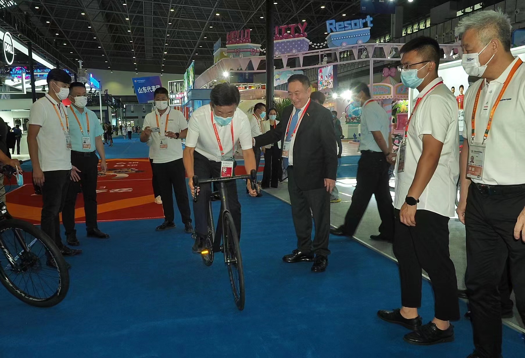 商務(wù)部副部長盛秋平和海南省副省長倪強(qiáng)在泰山體育產(chǎn)業(yè)集團(tuán)董事會主席卞志良陪同下,參觀一號館泰山體育展廳。