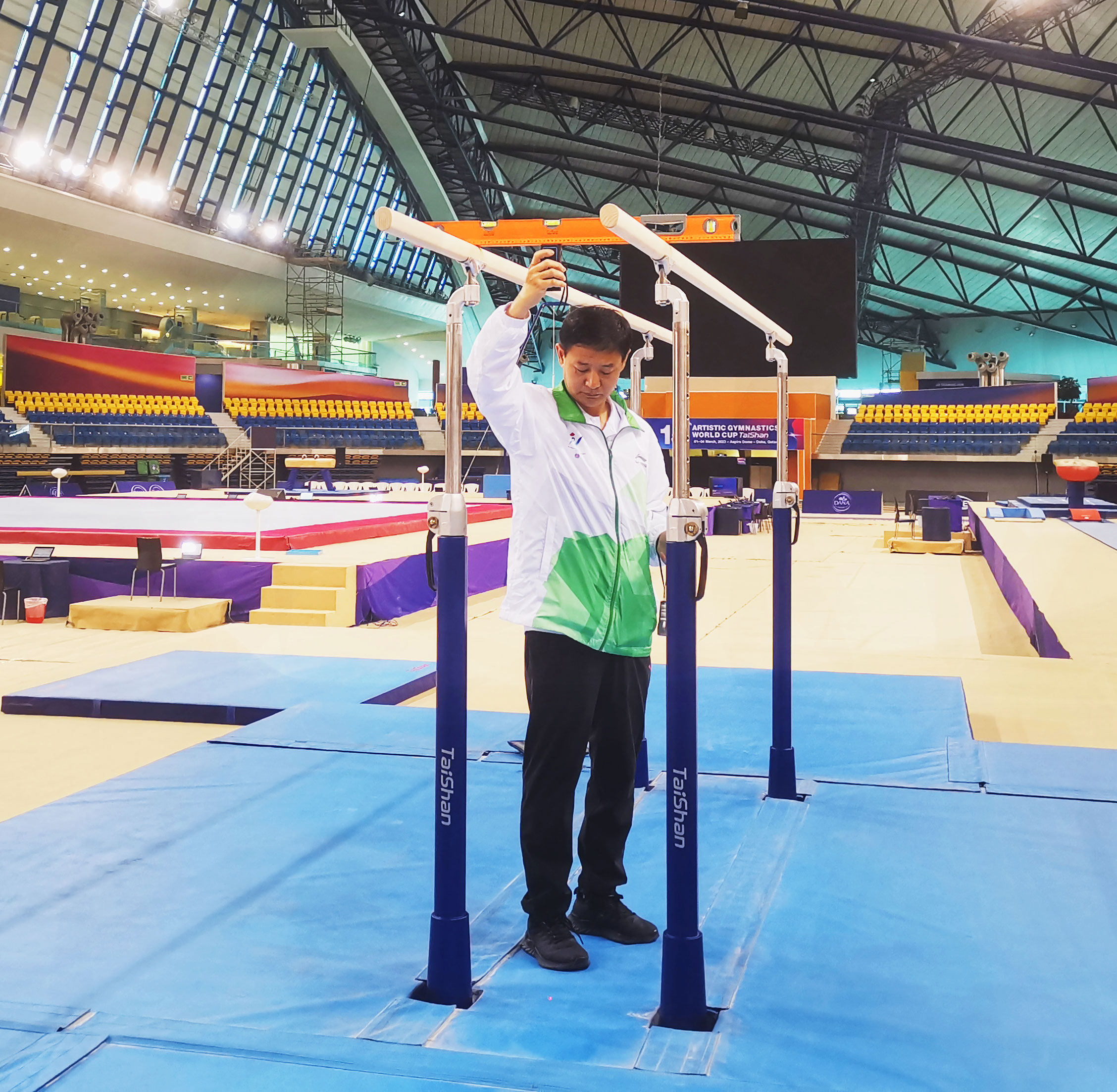在精彩的賽事背后,離不開泰山體育團(tuán)隊(duì)的默默付出。泰山體育專業(yè)服務(wù)保障團(tuán)隊(duì)駐扎賽場(chǎng)全程守護(hù),為大賽保駕護(hù)航。賽前,他們連續(xù)日夜奮戰(zhàn),如期完成訓(xùn)練場(chǎng)館、熱身場(chǎng)館、比賽場(chǎng)館每件器材的安裝、調(diào)試,檢測(cè)工作,為比賽做好充分保障;賽中,泰山服務(wù)人員30秒內(nèi)即可完成高低杠的升杠降杠,保證了比賽的流程進(jìn)行。泰山保障團(tuán)隊(duì)以高效、精準(zhǔn)、專業(yè)的表現(xiàn)震驚全場(chǎng),贏得了極高贊譽(yù)。
